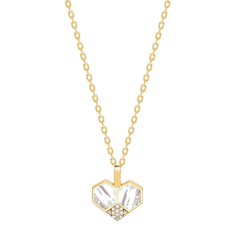 تعليقة قلب صغير صدف أبيض ، ذهب عيار 18، ألماس طبيعي