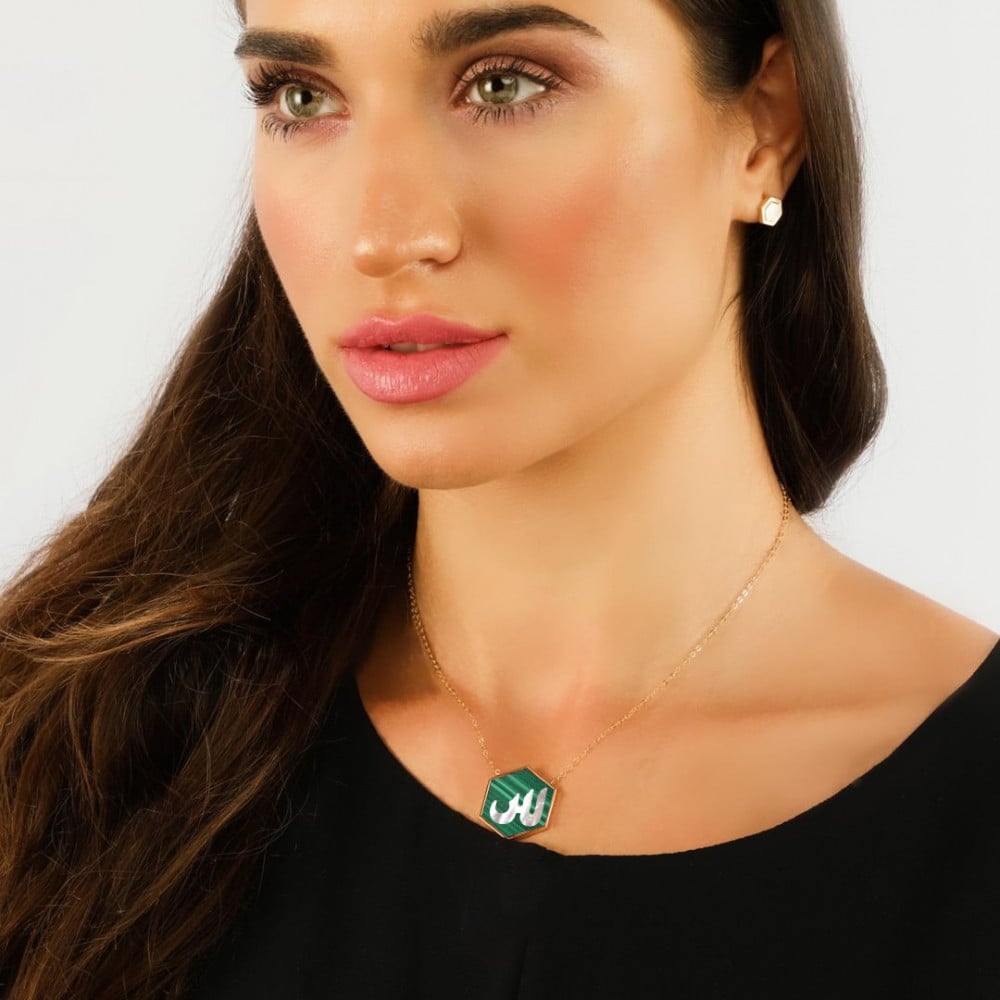 الأحجار : الحرف صدف أبيض والمضلع ملاكايت