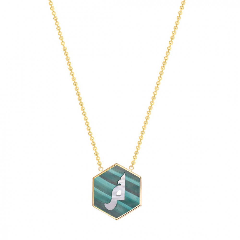 تعليقة حرف غ صدف أبيض ، مضلع ملاكايت